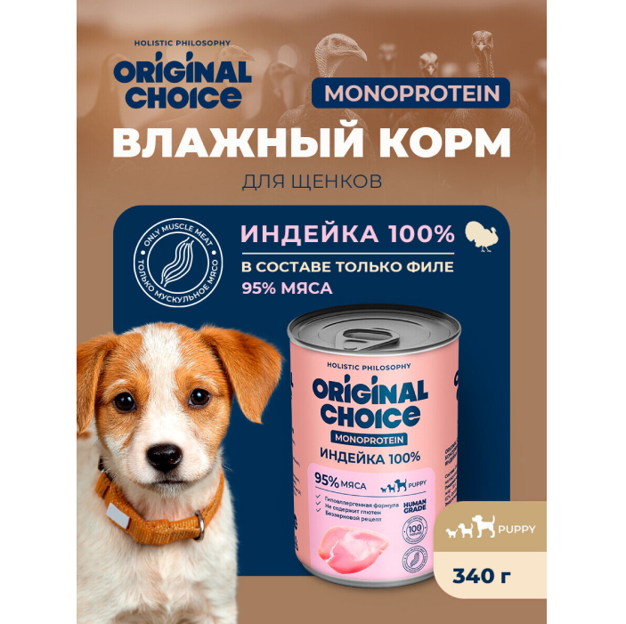 Original Choice Monoprotein Puppy влажный корм для щенков всех пород, индейка.