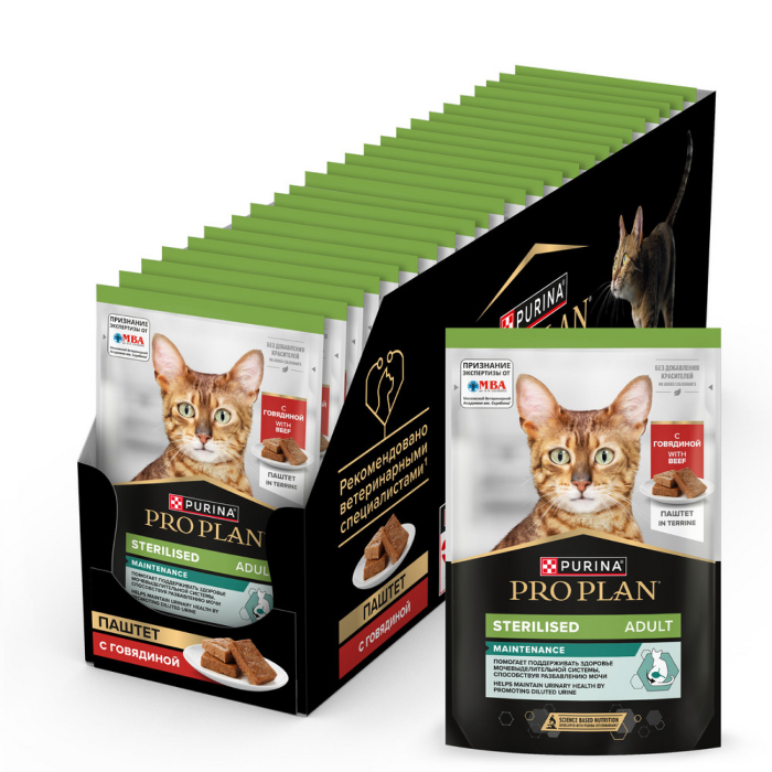 Влажный корм Pro Plan Sterilised MAINTENANCE для взрослых стерилизованных кошек, паштет с говядиной.